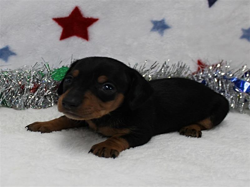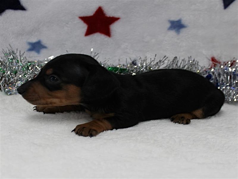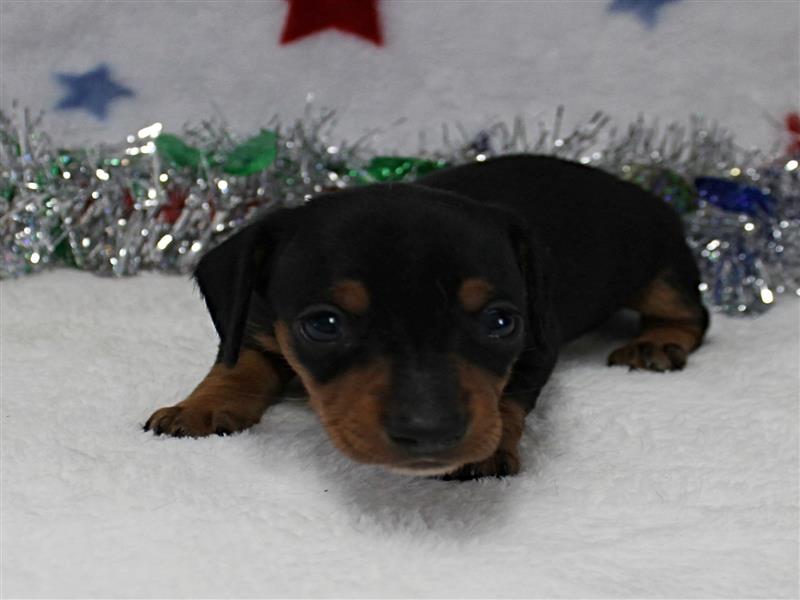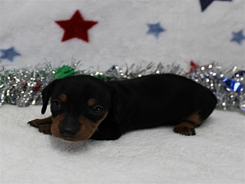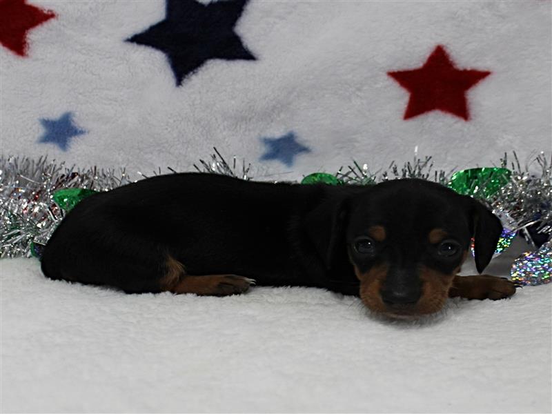 **Price** $1500 AKC Karlie's Black & Tan Female Puppy 1. Born October 30, 2025. This little girl could be ready to leave for her new home around December 28th to brighten your New Year! A $200 nonrefundable deposit is required to hold the puppy for you. The puppy will come to you with current vaccinations, a medical record showing vaccinations and deworming's, registration application and a veterinarian check. AKC Pet Only Registration: $1500 AKC Full registration is available for an additional charge. Please contact us for Full registration pricing. If feasible for you, we welcome you to visit our kennel and see the puppies. For our visitation guidelines, please visit our website at ricdenkennels.com under the About Us section.