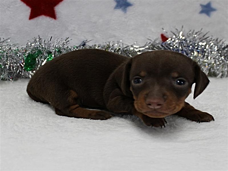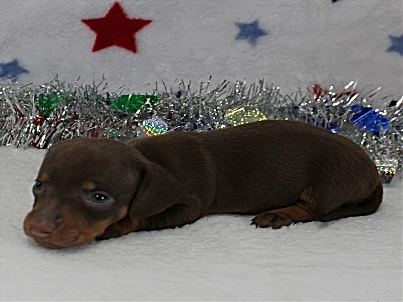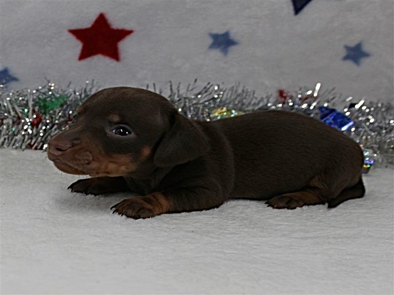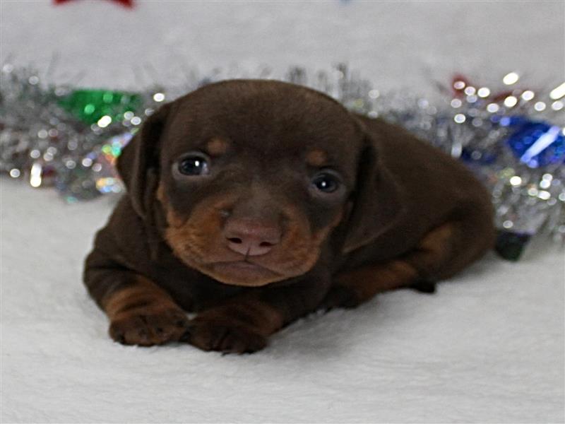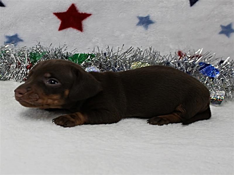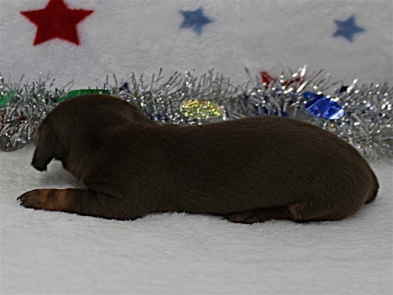 **Price** $1500 AKC Karlie's Chocolate Male Puppy 2. Born October 30, 2025. This little guy could be ready to leave for his new home the week of Christmas! A $200 nonrefundable deposit is required to hold the puppy for you. The puppy will come to you with current vaccinations, a medical record showing vaccinations and deworming's, registration application and a veterinarian check. AKC Pet Only Registration: $1500 AKC Full registration is available for an additional charge. Please contact us for Full registration pricing. If feasible for you, we welcome you to visit our kennel and see the puppies. For our visitation guidelines, please visit our website at ricdenkennels.com under the About Us section.