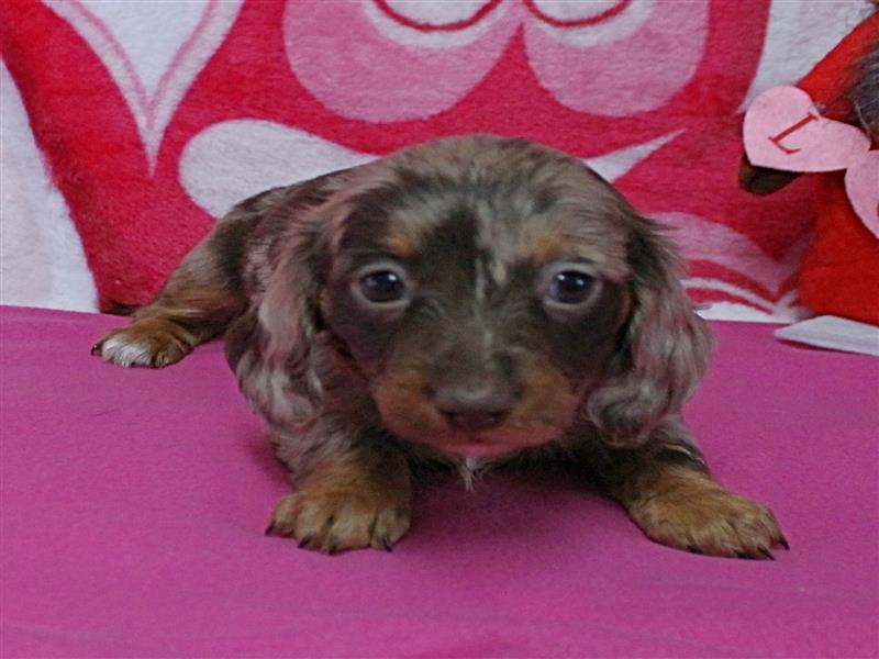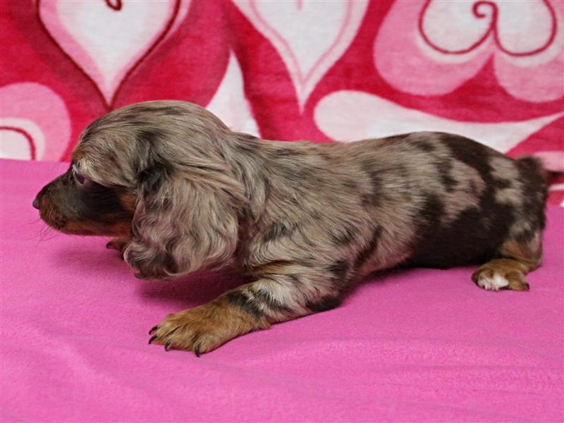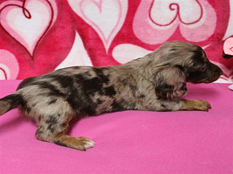 **Price** $2,200 AKC Sadie's Dapple Long Hair Female Puppy 1. Born December 9, 2025. This little girl could be ready to leave for her new home around February 3rd. A $200 nonrefundable deposit is required to hold the puppy for you. The puppy will come to you with current vaccinations, a medical record showing vaccinations and deworming's, registration application and a veterinarian check. AKC Pet Only Registration: $1500 AKC Full registration is available for an additional charge. Please contact us for Full registration pricing. If feasible for you, we welcome you to visit our kennel and see the puppies. For our visitation guidelines, please visit our website at ricdenkennels.com under the About Us section.