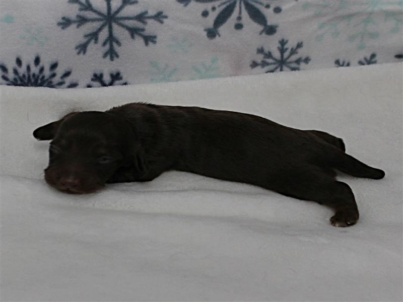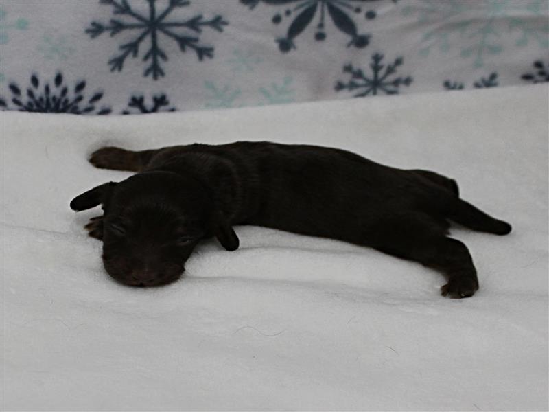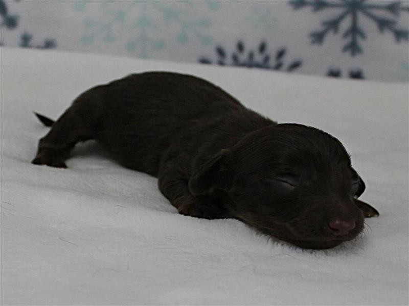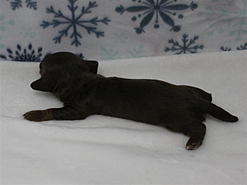 **Price** $1,500 AKC Sadie's Chocolate & Tan Long Hair Male Puppy 4. Born December 9, 2025. This little guy could be ready to leave for his new home around January 3rd. A $200 nonrefundable deposit is required to hold the puppy for you. The puppy will come to you with current vaccinations, a medical record showing vaccinations and deworming's, registration application and a veterinarian check. AKC Pet Only Registration: $1500 AKC Full registration is available for an additional charge. Please contact us for Full registration pricing. If feasible for you, we welcome you to visit our kennel and see the puppies. For our visitation guidelines, please visit our website at ricdenkennels.com under the About Us section.