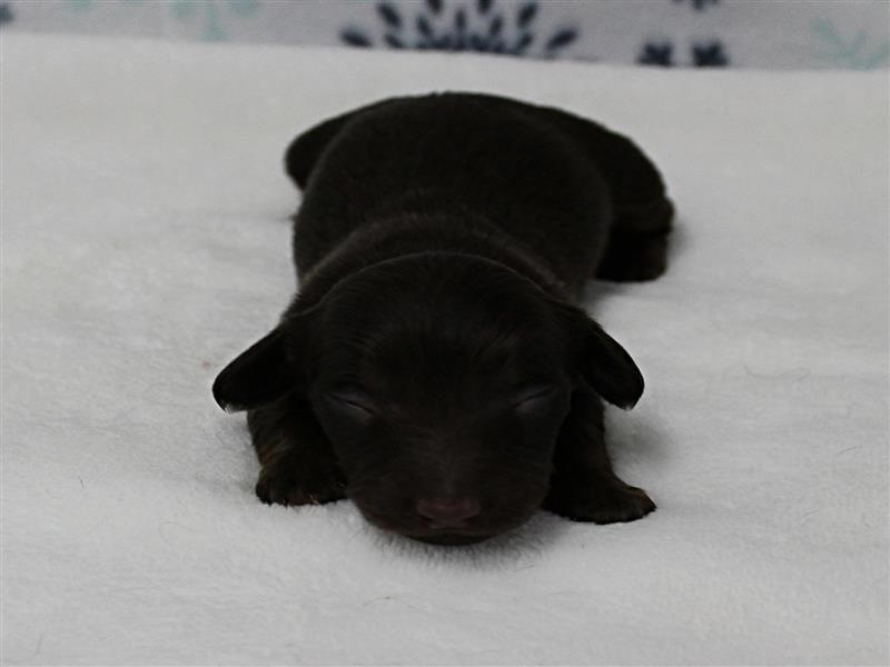 Meet AKC Sadie's Chocolate & Tan Long Hair Male Puppy 4