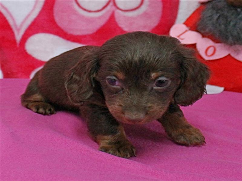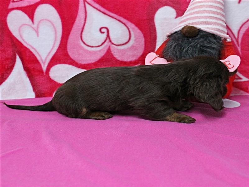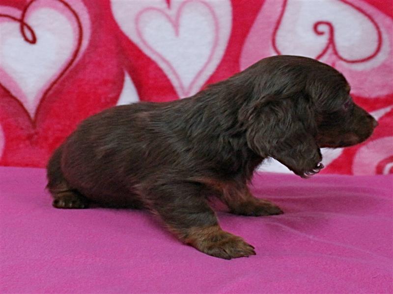 Meet AKC Sadie's Chocolate & Tan Long Hair Male Puppy 5