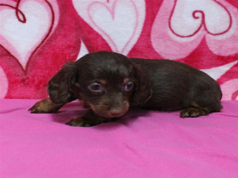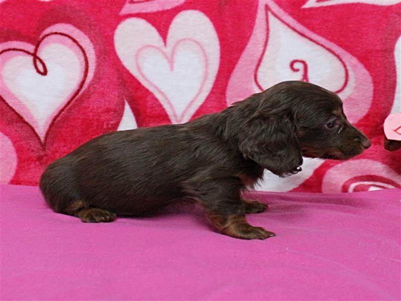 **Price** $1,500 AKC Sadie's Chocolate & Tan Long Hair Male Puppy 5. Born December 9, 2025. This little guy could be ready to leave for his new home around February 3rd. A $200 nonrefundable deposit is required to hold the puppy for you. The puppy will come to you with current vaccinations, a medical record showing vaccinations and deworming's, registration application and a veterinarian check. AKC Pet Only Registration: $1500 AKC Full registration is available for an additional charge. Please contact us for Full registration pricing. If feasible for you, we welcome you to visit our kennel and see the puppies. For our visitation guidelines, please visit our website at ricdenkennels.com under the About Us section.