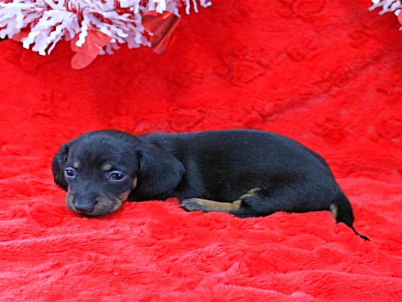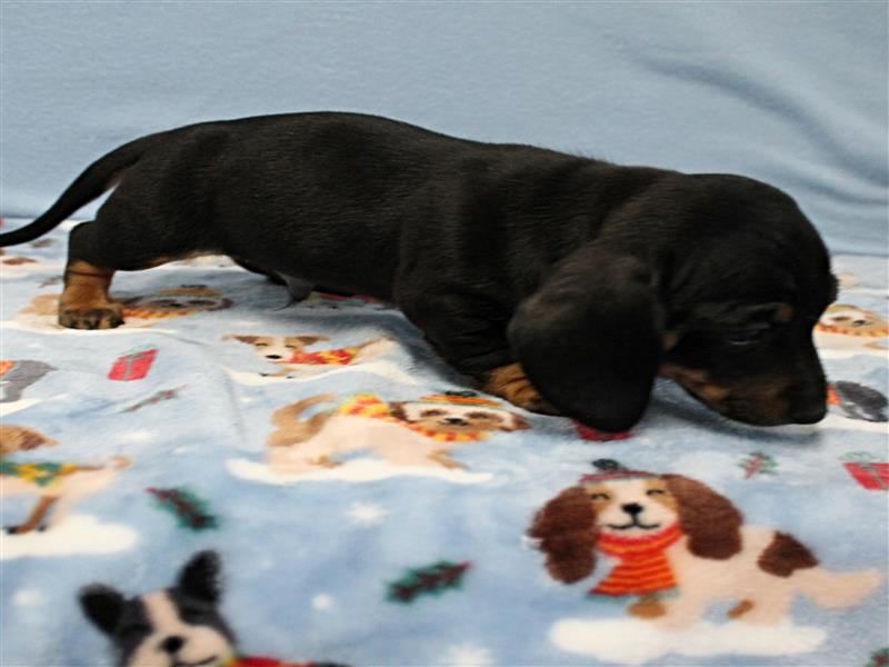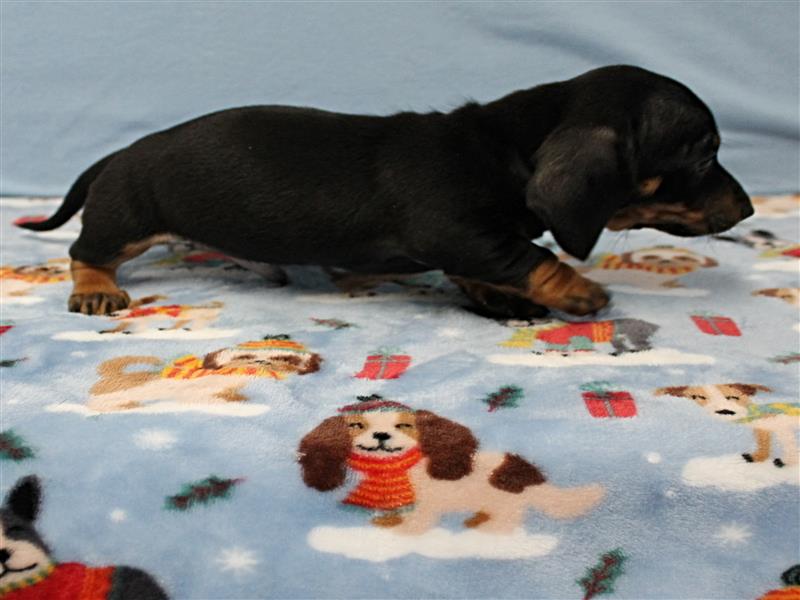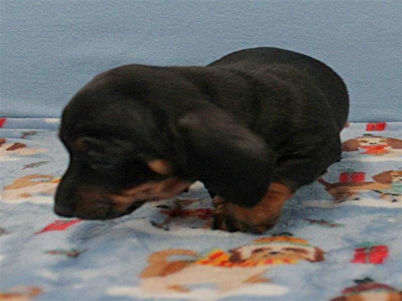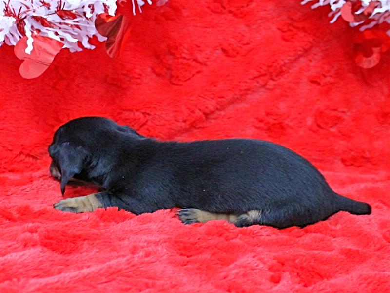 **Price** $1,500 AKC Taylor's Black & Tan Male Puppy 3. Born December 9, 2025. This little guy could be ready to leave for his new home around February 7th. A $200 nonrefundable deposit is required to hold the puppy for you. The puppy will come to you with current vaccinations, a medical record showing vaccinations and deworming's, registration application and a veterinarian check. AKC Pet Only Registration: $1500 AKC Full registration is available for an additional charge. Please contact us for Full registration pricing. If feasible for you, we welcome you to visit our kennel and see the puppies. For our visitation guidelines, please visit our website at ricdenkennels.com under the About Us section.