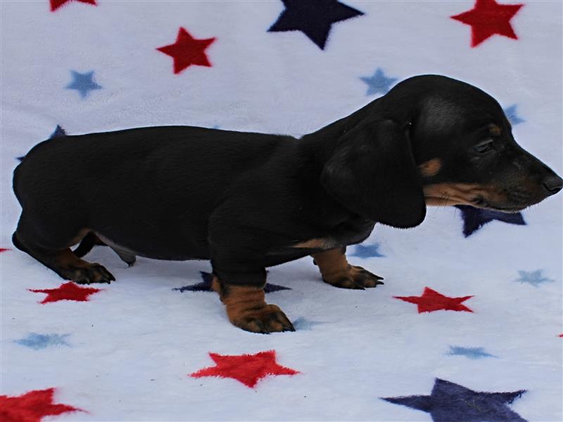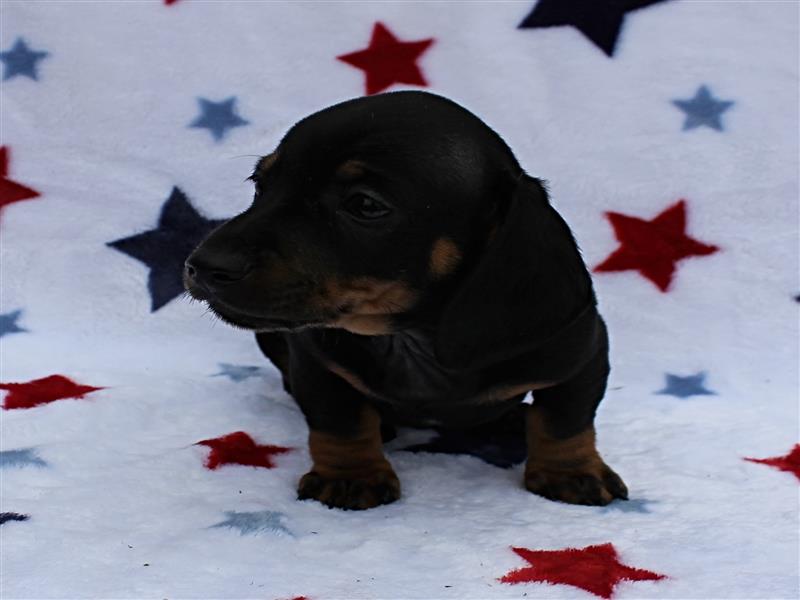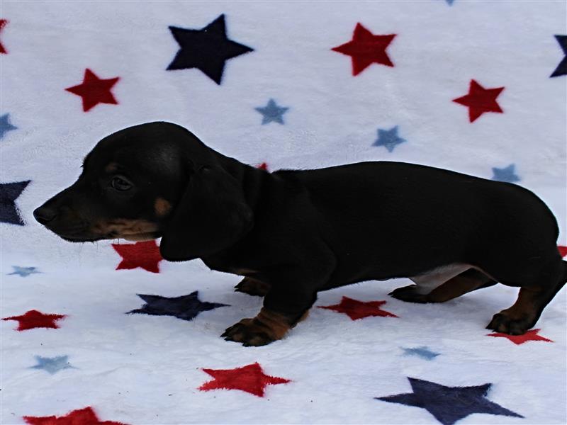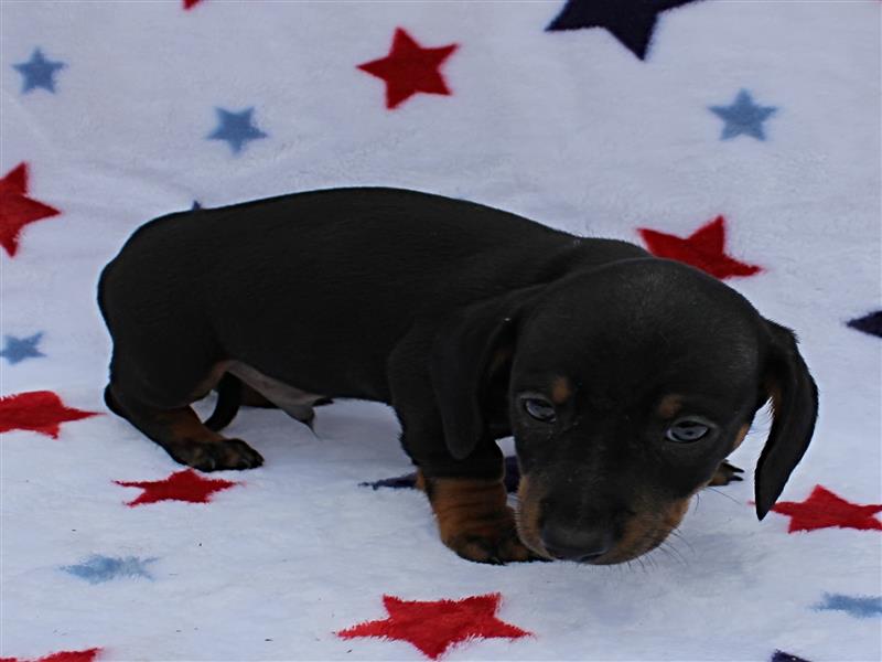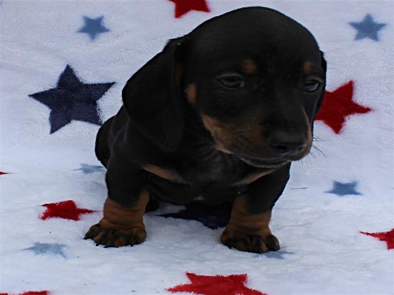 $1500 AKC Harley's Black & Tan Male Puppy 4. Born January 1, 2026. This little girl could be ready to leave for her new home around March 16th. A $200 nonrefundable deposit is required to hold the puppy for you. The puppy will come to you with current vaccinations, a medical record showing vaccinations and deworming's, registration application and a veterinarian check. AKC Pet Only Registration: $1500 AKC Full registration is available for an additional charge. Please contact us for Full registration pricing. If feasible for you, we welcome you to visit our kennel and see the puppies. For our visitation guidelines, please visit our website at ricdenkennels.com under the About Us section.