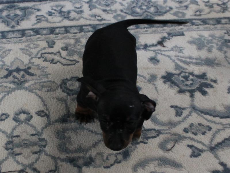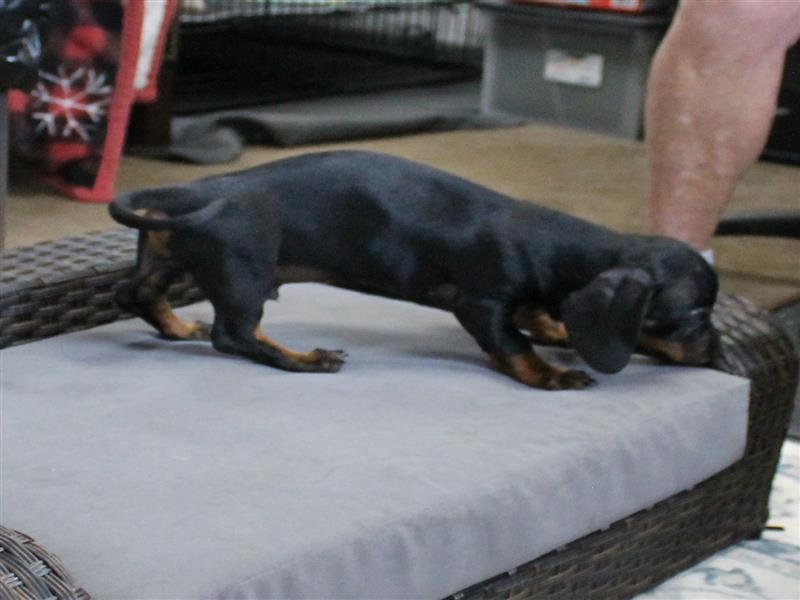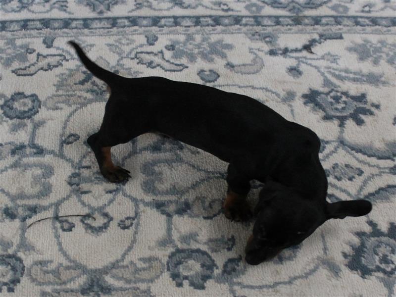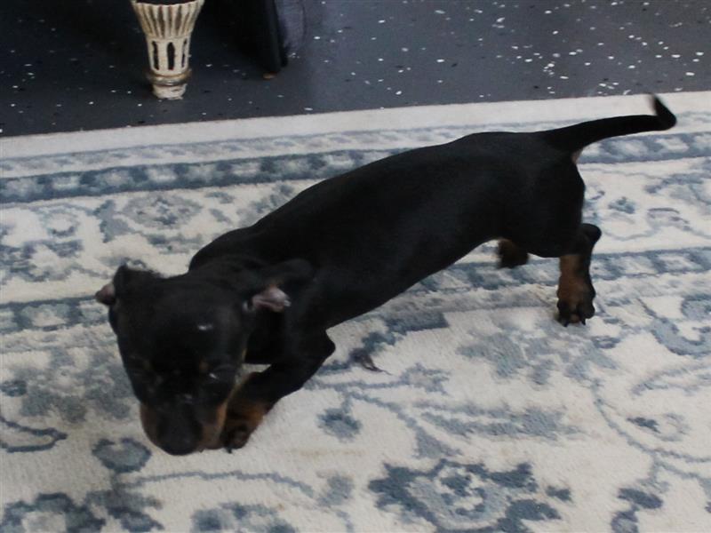 $1200 AKC Harley's Black & Tan Male Puppy 4. Born January 1, 2026. This little girl could be ready to leave for her new home around March 16th. A $200 nonrefundable deposit is required to hold the puppy for you. The puppy will come to you with current vaccinations, a medical record showing vaccinations and deworming's, registration application and a veterinarian check. AKC Pet Only Registration: $1500 AKC Full registration is available for an additional charge. Please contact us for Full registration pricing. If feasible for you, we welcome you to visit our kennel and see the puppies. For our visitation guidelines, please visit our website at ricdenkennels.com under the About Us section.