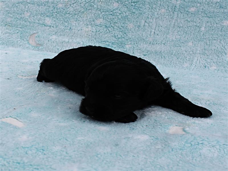 Twinkle's Black Male Puppy 5. Born February 20th. This little guy will be ready to leave for his new home around April 17th. $200 nonrefundable deposit is required to hold the puppy for you. The puppy will come to you with current vaccinations, a medical record showing vaccinations and deworming's, registration application and a veterinarian check, as well as a 1-year health guarantee against congenital health issues. If feasible for you, we welcome you to visit our kennel and see the puppies. For our visitation guidelines, please visit our website at ricdenkennels.com under the About Us section. If a visit to the kennels is not practical for you, then a Facetime tour of the kennels and meet with the puppy could be an option.