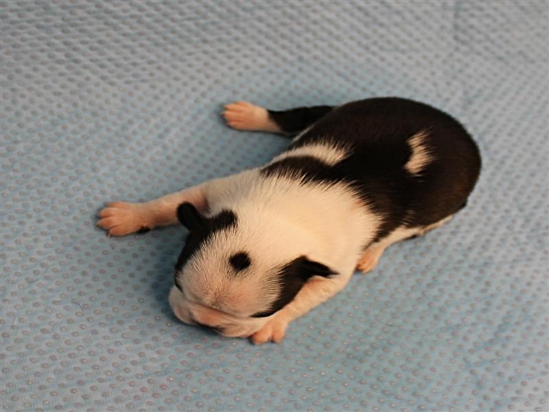 Polly's Black & White Male Puppy 5. Born March 12th. This little guy will be ready to leave for his new home around May 7th. A $200 nonrefundable deposit is required to hold the puppy for you. The puppy will come to you with current vaccinations, a medical record showing vaccinations and deworming's, registration application and a veterinarian check, as well as a 1-year health guarantee against congenital health issues. If feasible for you, we welcome you to visit our kennel and see the puppies. For our visitation guidelines, please visit our website at ricdenkennels.com under the About Us section. If a visit to the kennels is not practical for you, then a Facetime tour of the kennels and meet with the puppy could be an option.